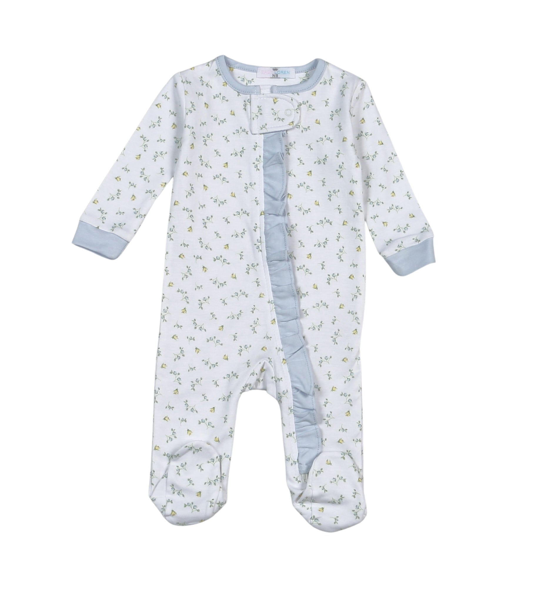 MIA-114 Mia Blue Floral Pima Zipper Footie