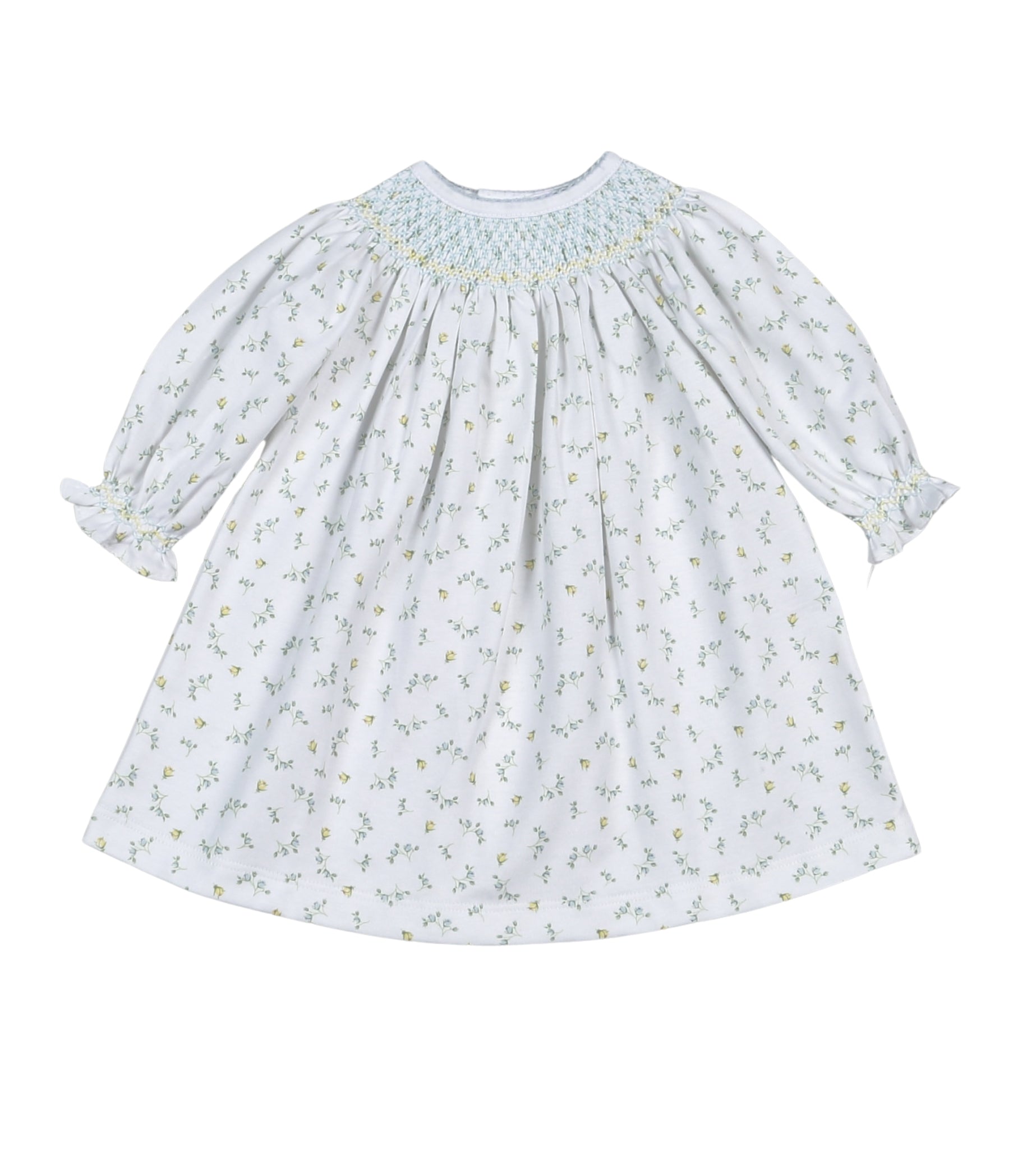 MIA-840 Mia Blue Floral Pima Hand Smk Bishop Dress