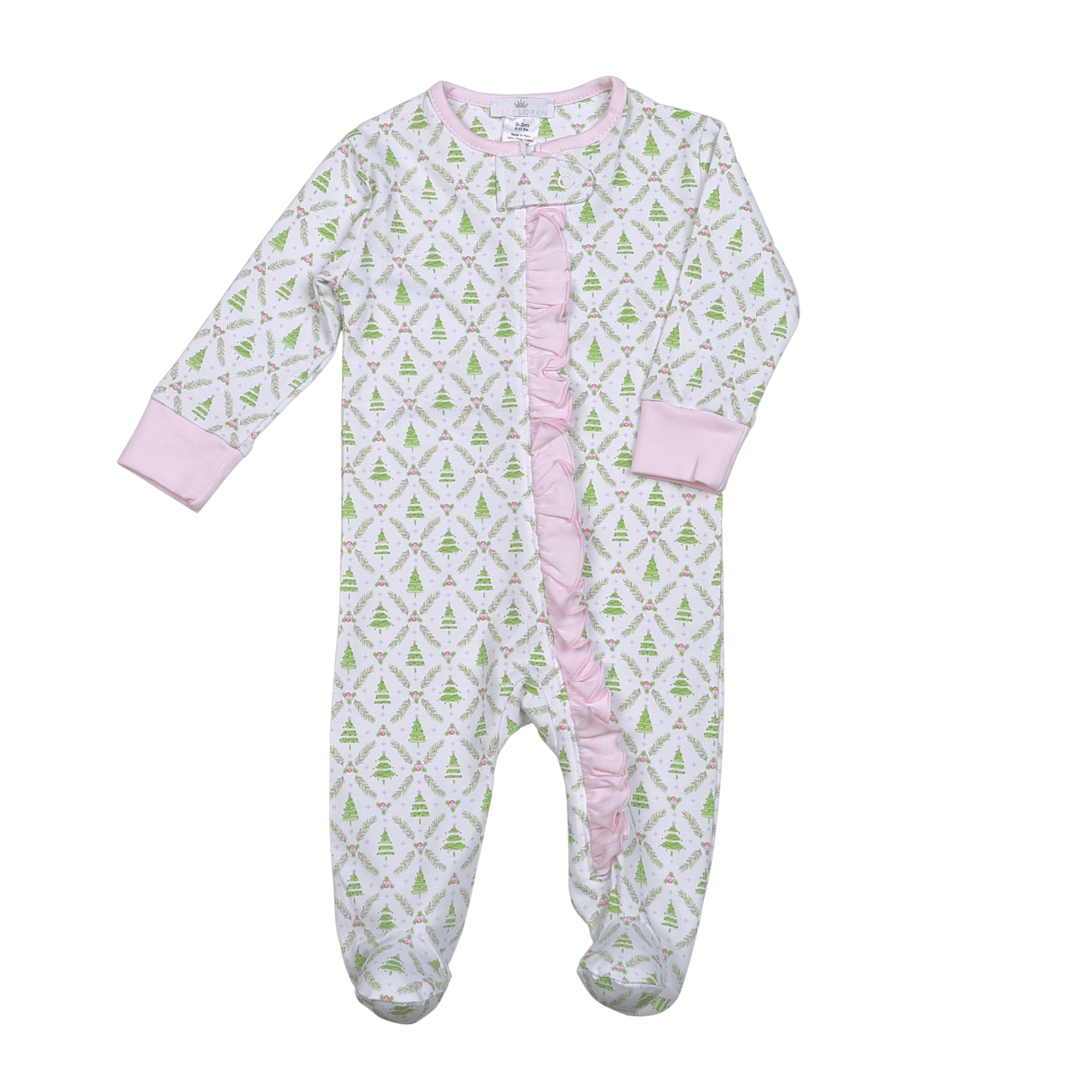 TRP-299 Pink Christmas Trees Pima Zipper Footie