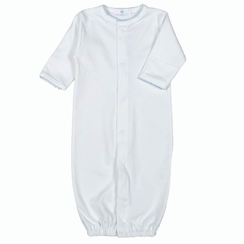 WBP-014 White Zipper Footie Blue Picot Trim.