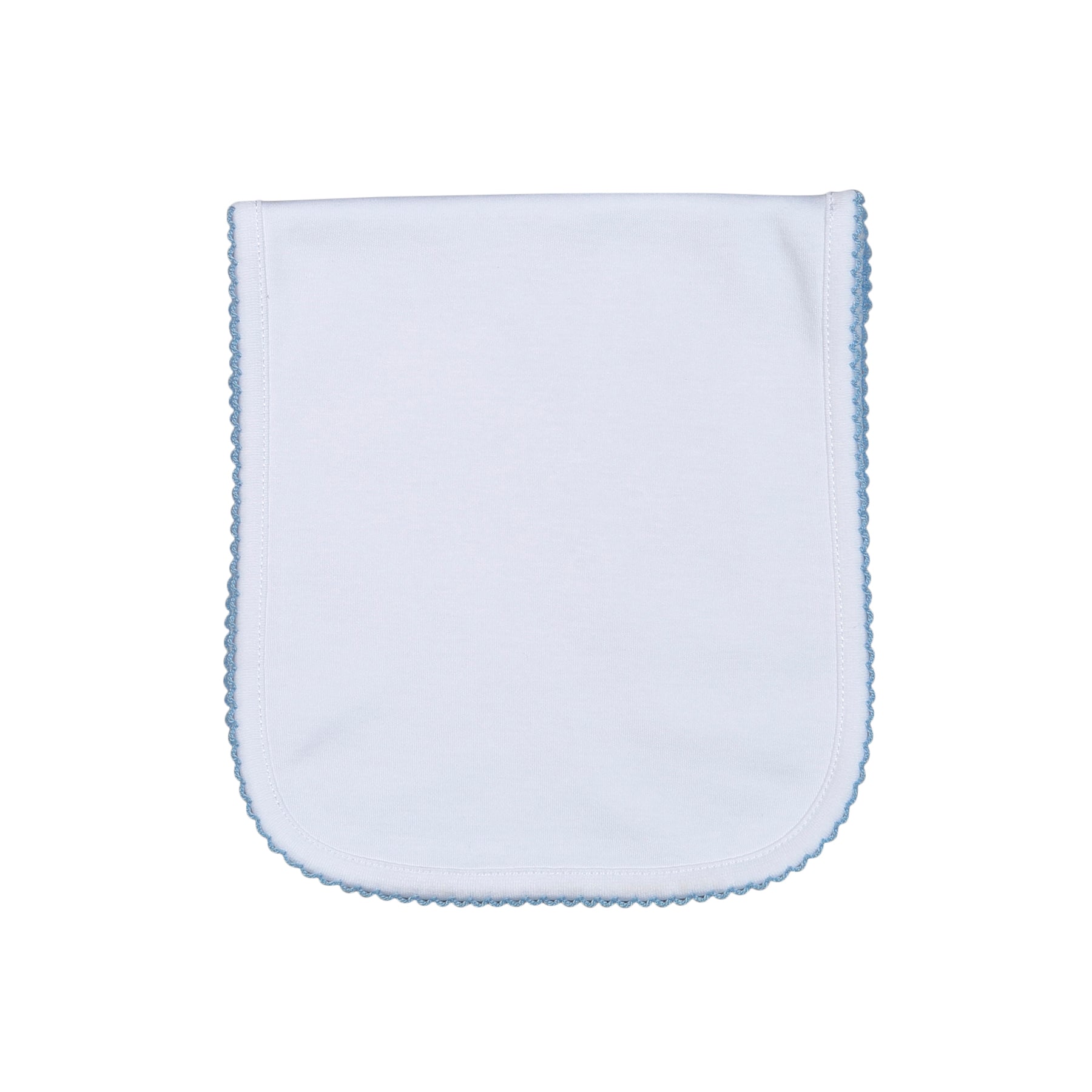 WBP-018 White Burping Pad Blue Picot Trim.