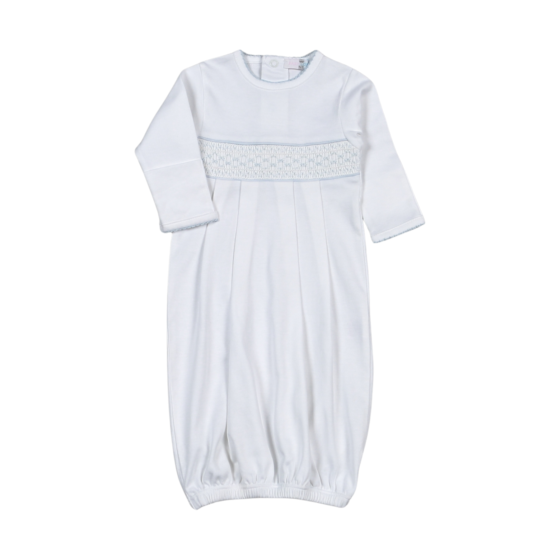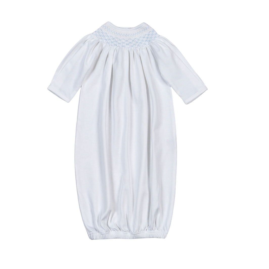 WBS-819 Tim white/Blue Hand Smocked Pima Gown