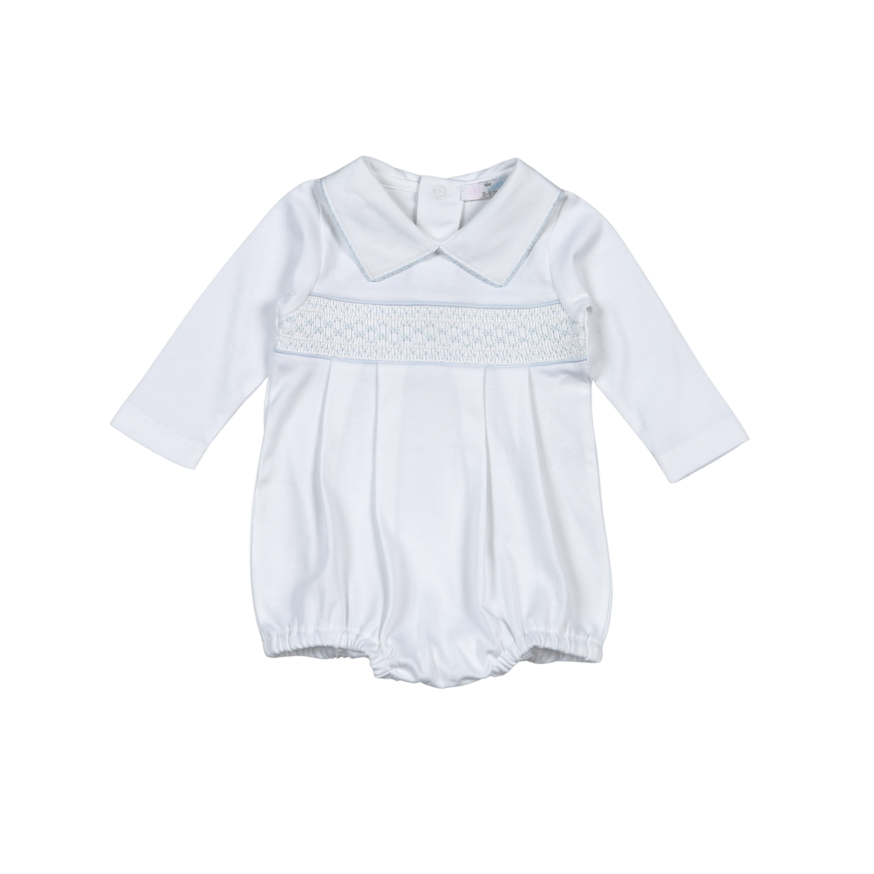 WBS-831 Tim white/Blue Hand Smocked Pima Long Sleevs Bubble
