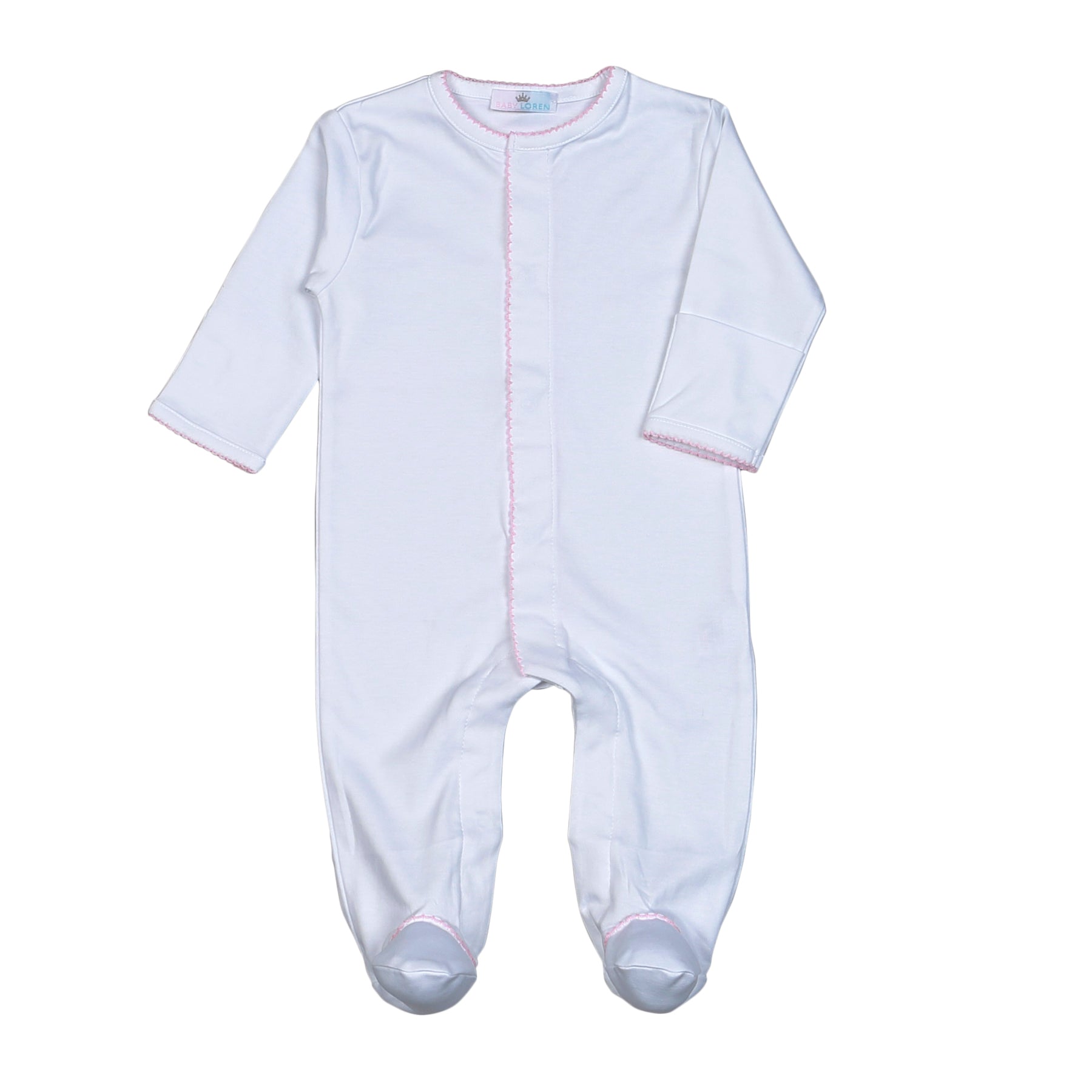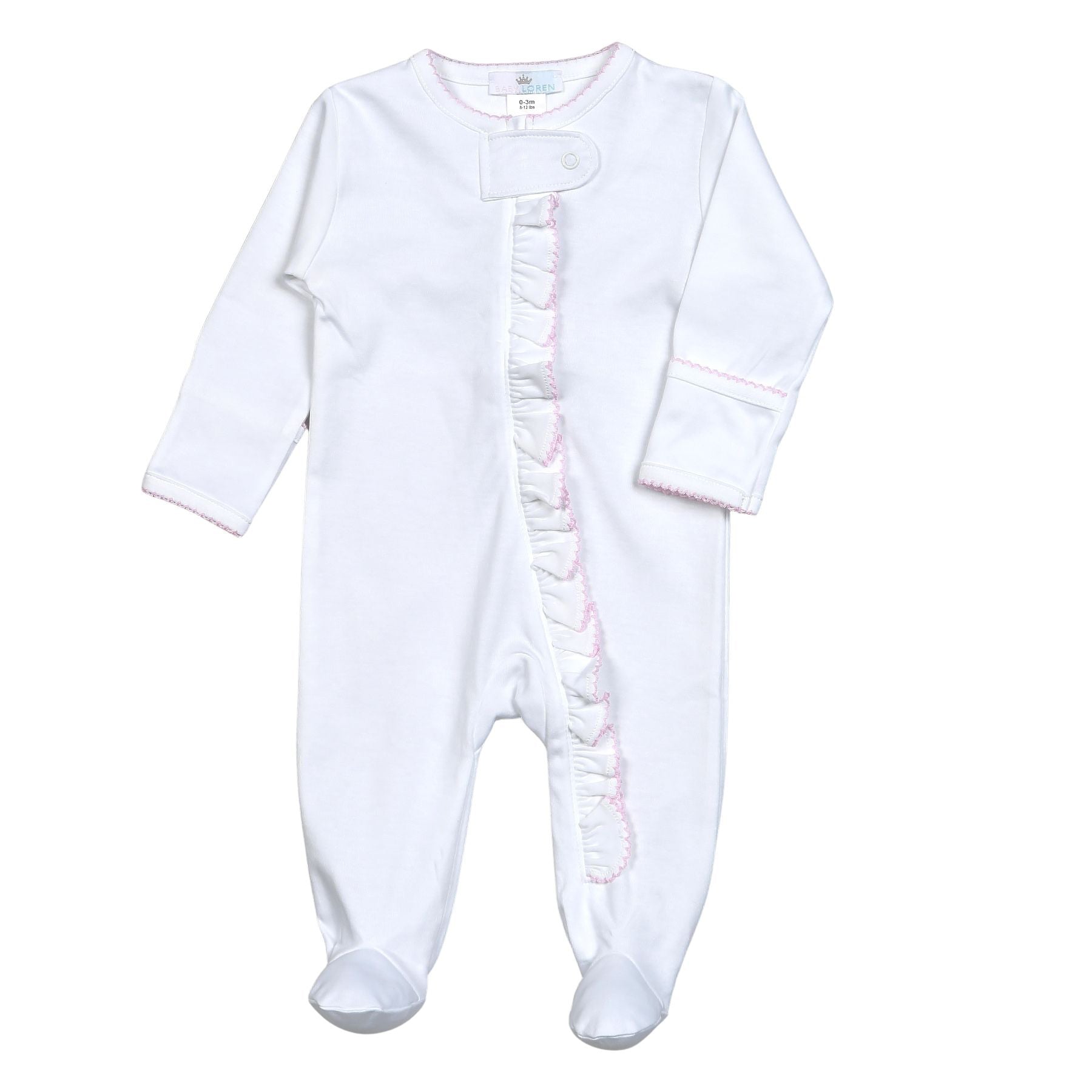 WPP-012 White Snap Footie Pink Picot Trim.