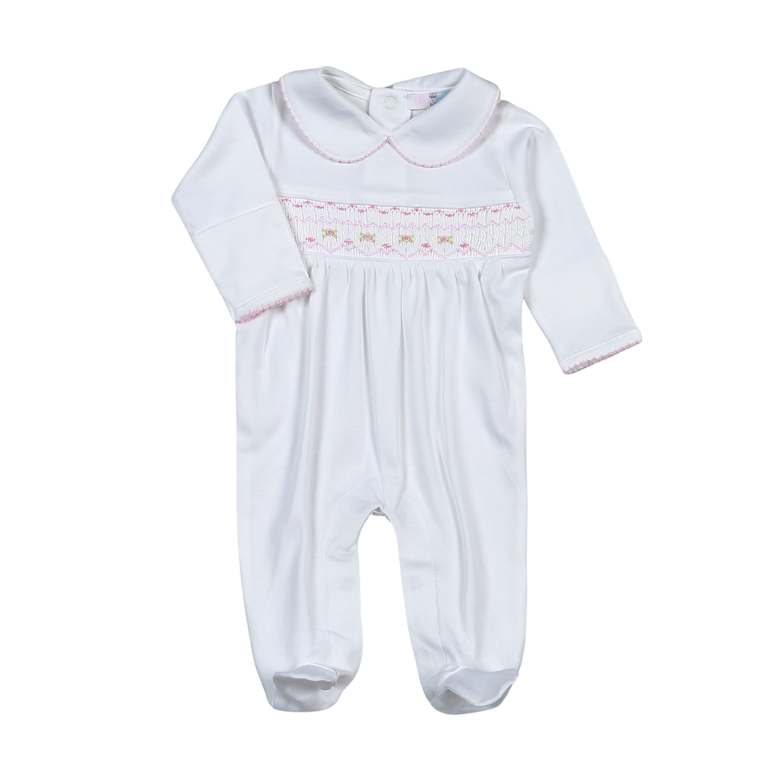 WPS-814 Sally white/pink Hand Smocked Pima Footie