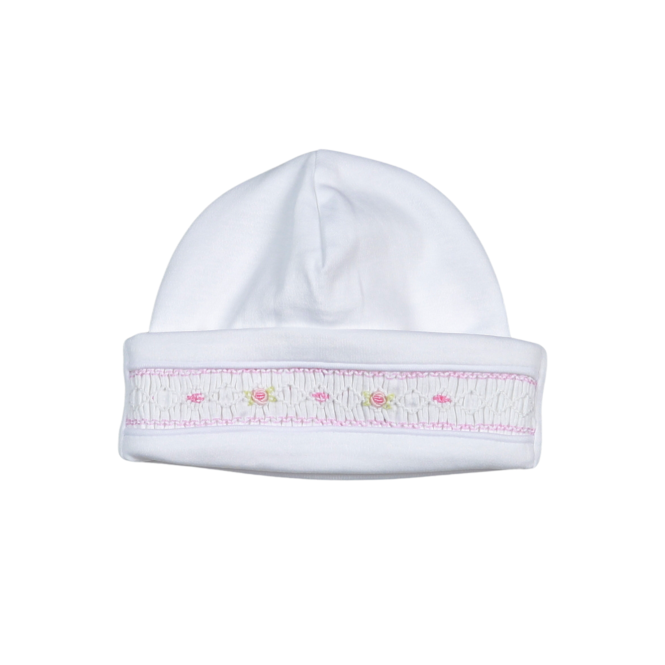 WPS-815 Sally white/pink Hand Smocked Pima Beanie
