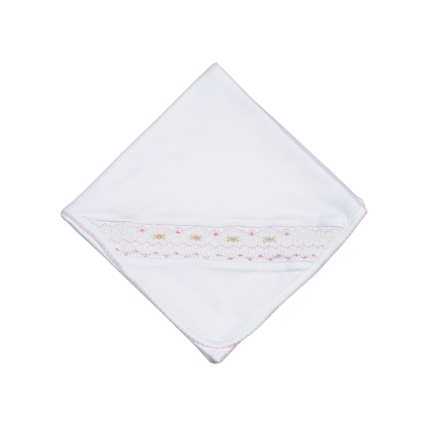 WPS-816 Sally white/pink Hand Smocked Pima Receiving Blanket