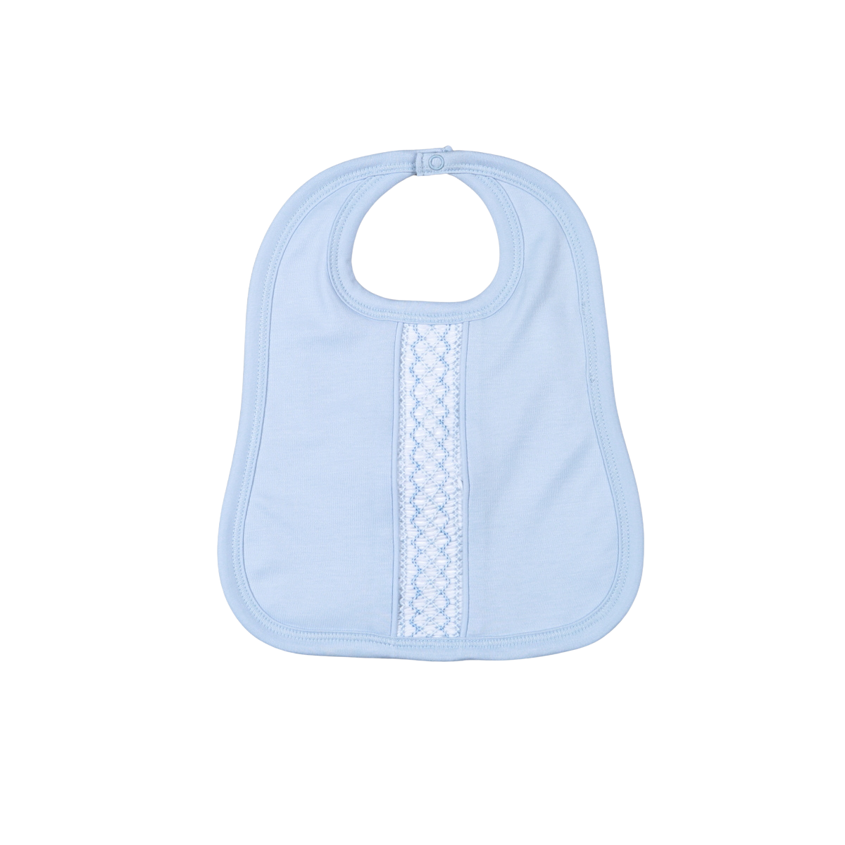 BGG-118 Blue gingham clsssic Pima Hand Smocked BIB