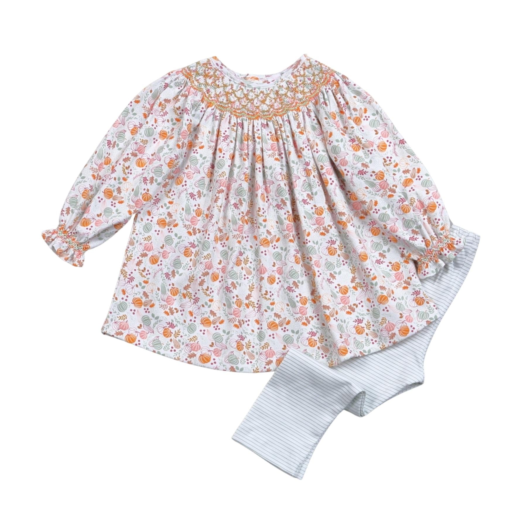 PSN-520 Pumpkin Season Hand Smocked Pima pants set