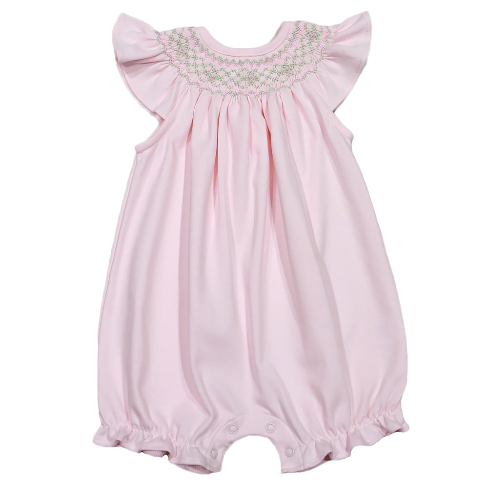 PNG-530 PINK AND GREEN HAND SMOCKED PIMA BISHOP BUBBLE