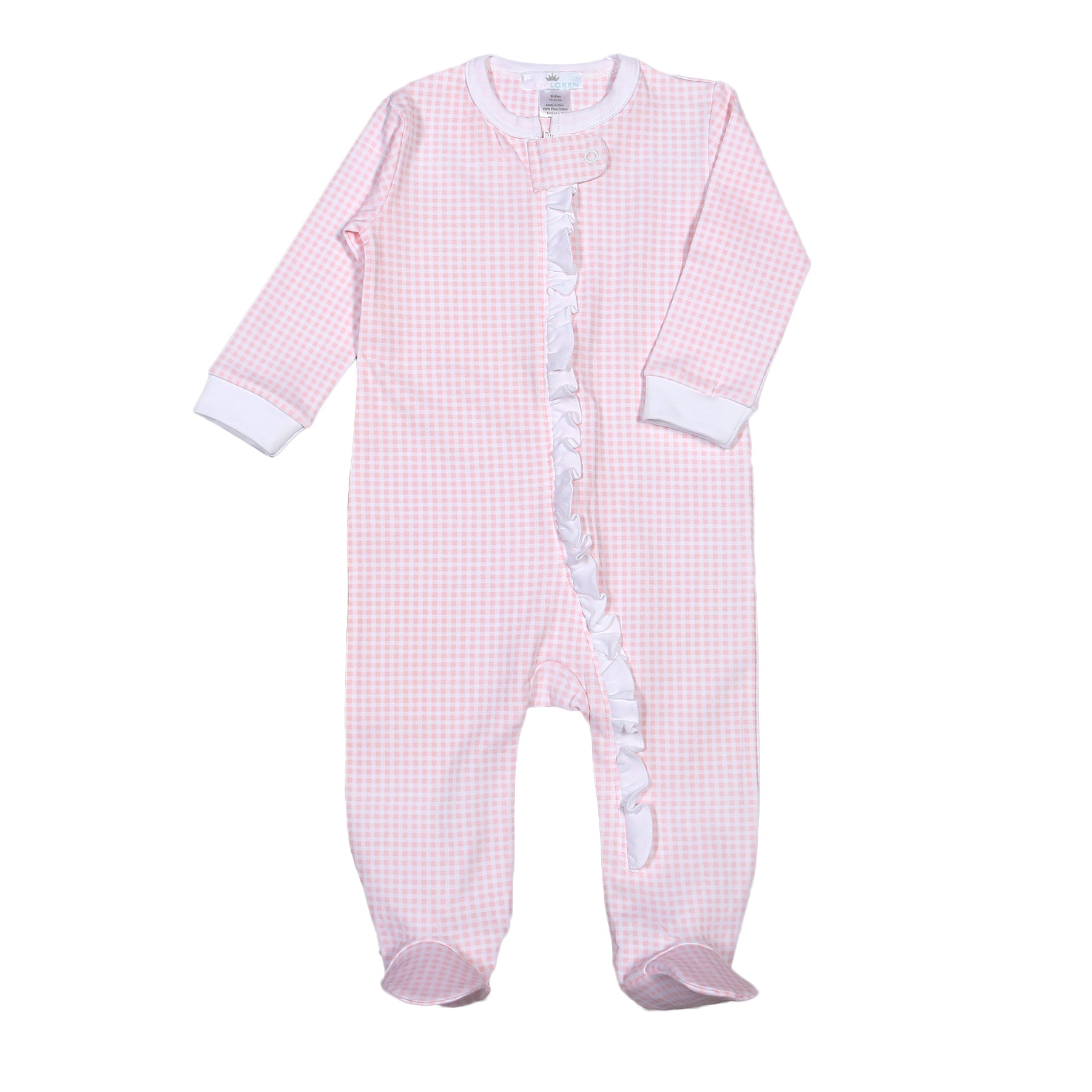 PINK GINGHAM ZIPPER LOUNGEWEAR. SNUGLY FIT. NOT FLAME RESISTANT.