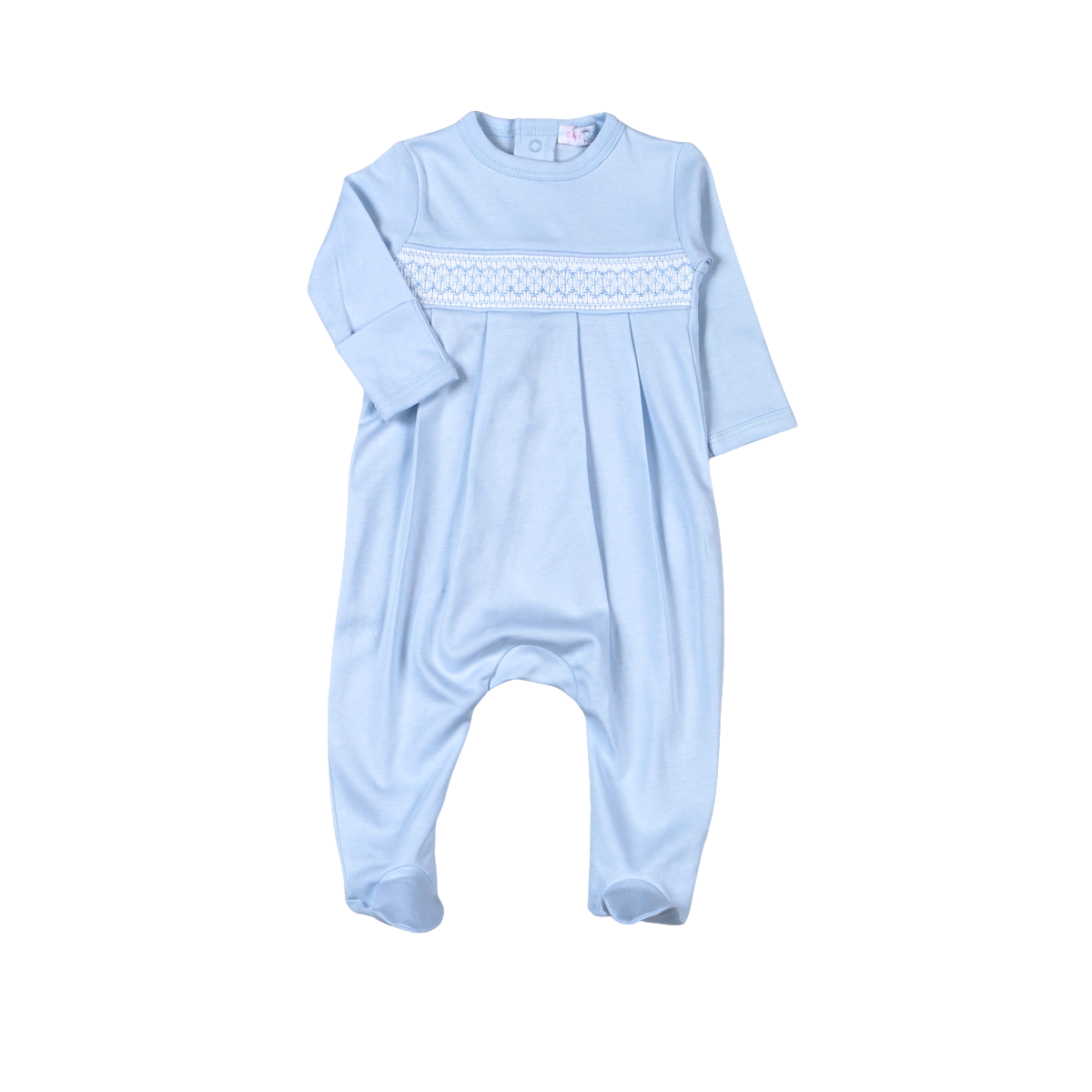 Blue Pima Hand Smocked Footie, 100% Pima Cotton, Made in Peru