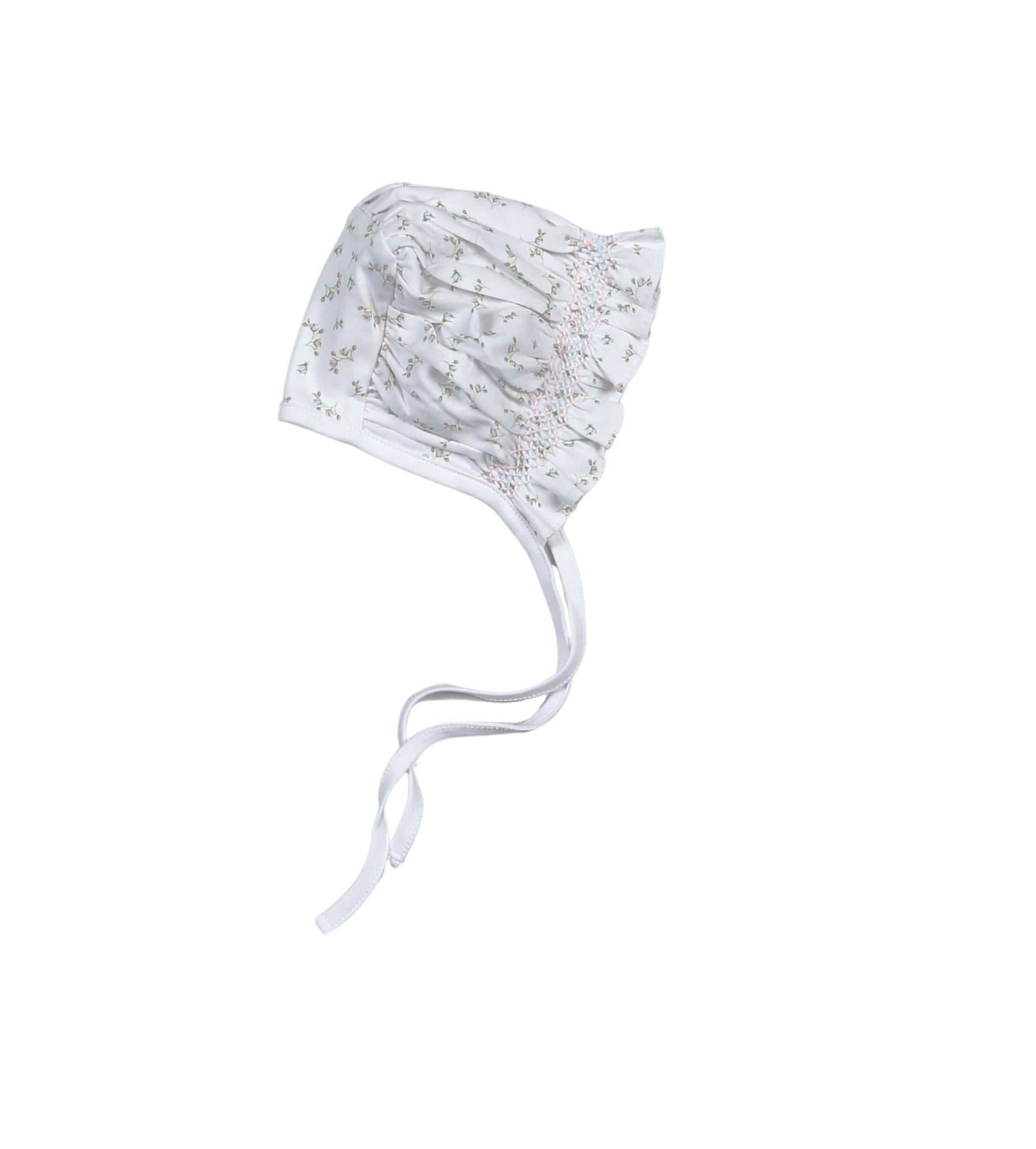 Bella Pink Floral Hand Smk Bonnet, Color: PRINT, 100% Pima Cotton, Made in Peru