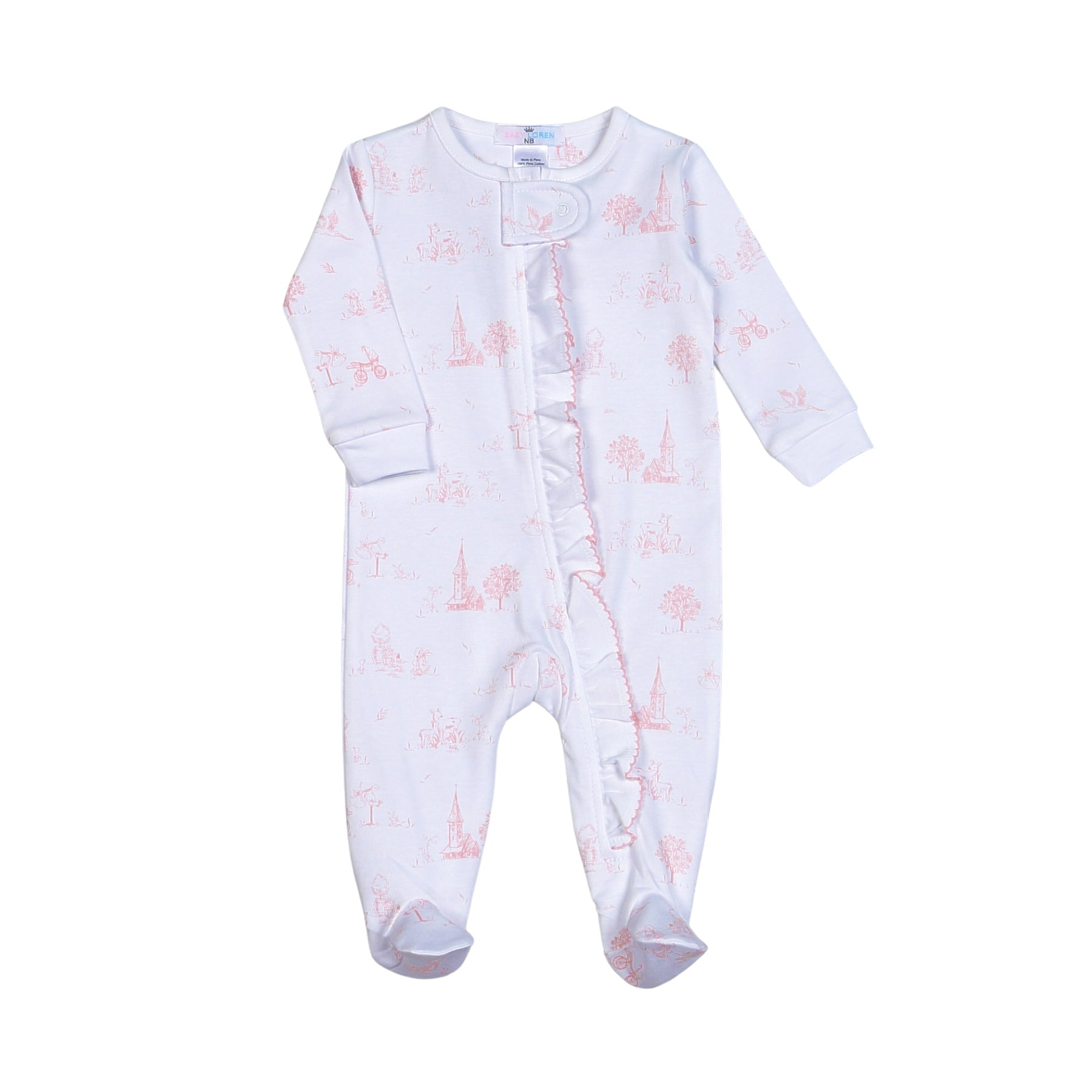 PINK BABY TOILE PIMA ZIPPER FOOTIE, Color:PINK, 100% Pima Cotton, Made in Peru
