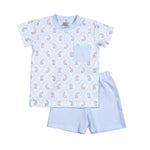 BLUE EASTER BUNNIES PIMA SHORT SET, Color:BLUE, 100% Pima Cotton, Made in Peru