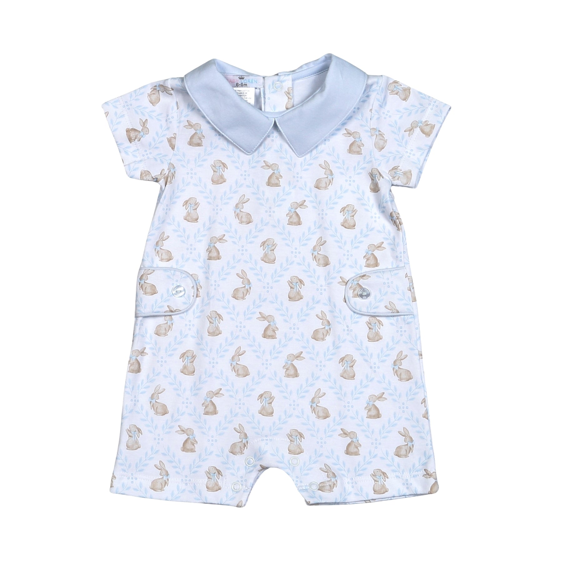 BLUE EASTER BUNNIES PIMA ROMPER, Color:BLUE, 100% Pima Cotton, Made in Peru