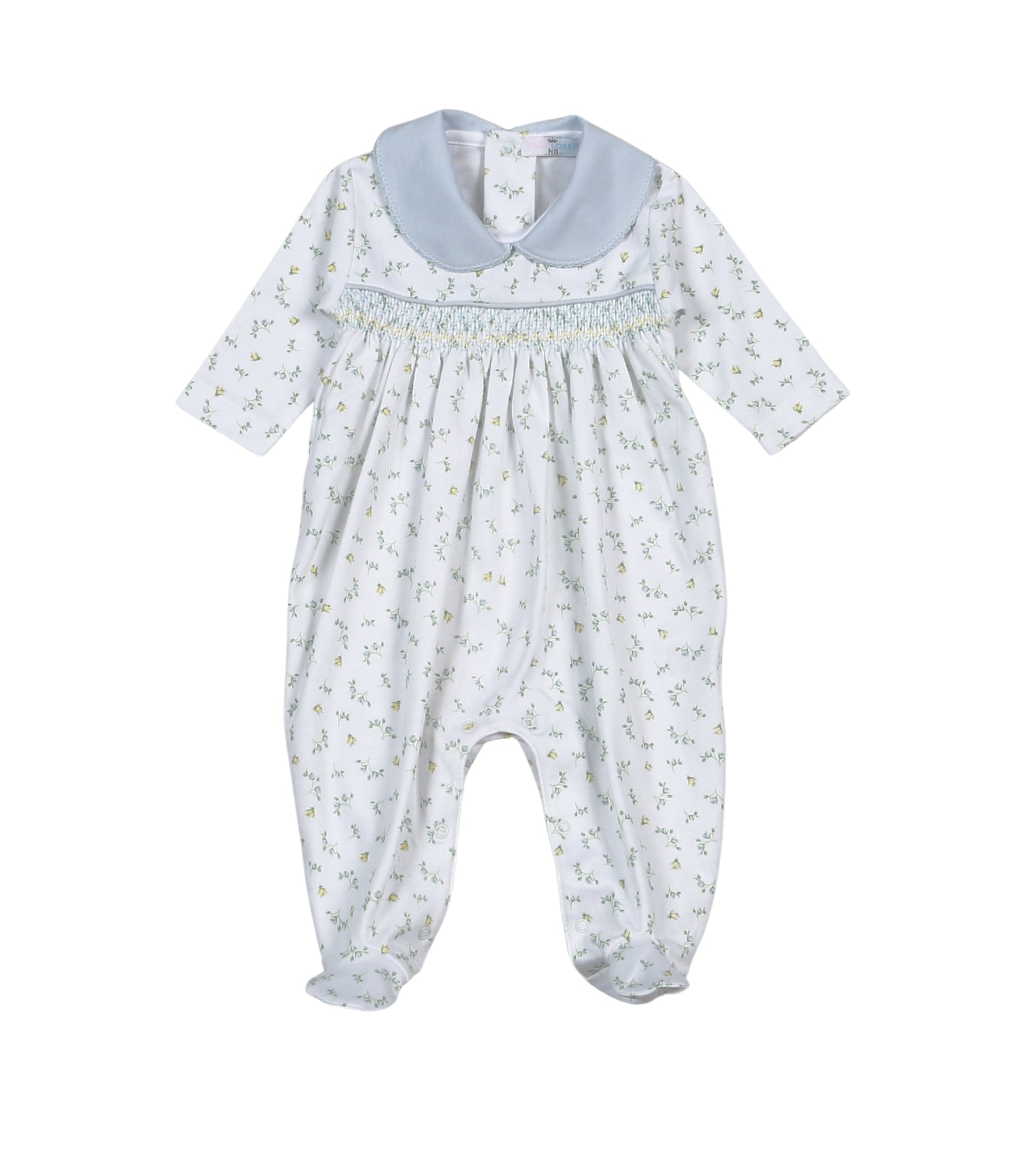 Mia Blue Floral Hand Smk Footie, Color: PRINT, 100% Pima Cotton, Made in Peru