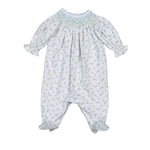 Mia Blue Floral Hand Smk Bishop Footie, Color: PRINT, 100% Pima Cotton, Made in Peru