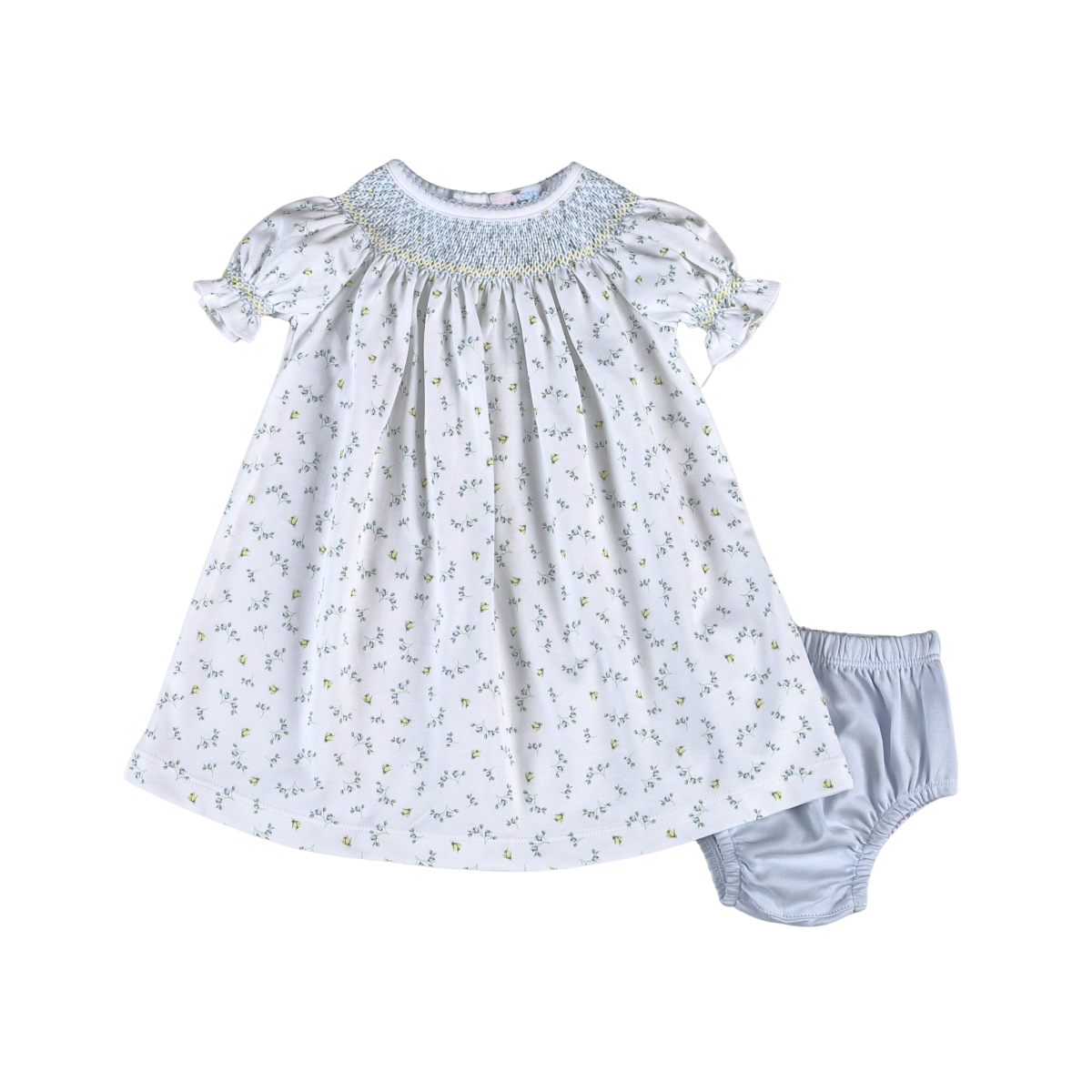Mia Blue Floral Pima Hand Smk Bishop Dress, Color: PRINT, 100% Pima Cotton, Made in Peru