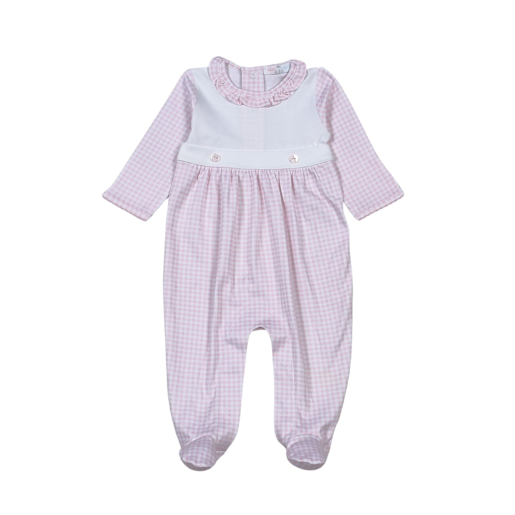 Pink Gingham Two Button footie., 100% Pima Cotton, Made in Peru