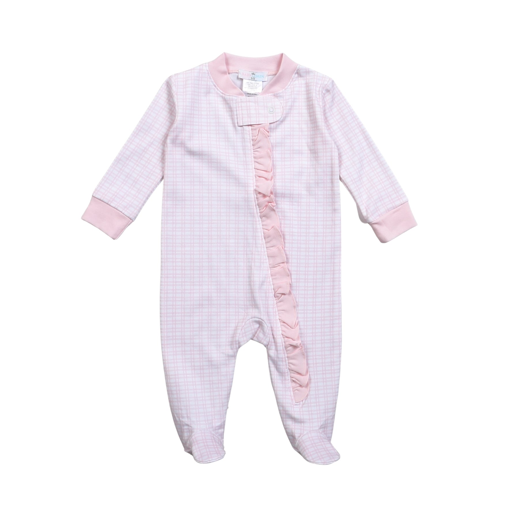 Pink Plaid Pima Zipper Footie, Color: Prin, 100% Pima Cotton, Made In Peru
