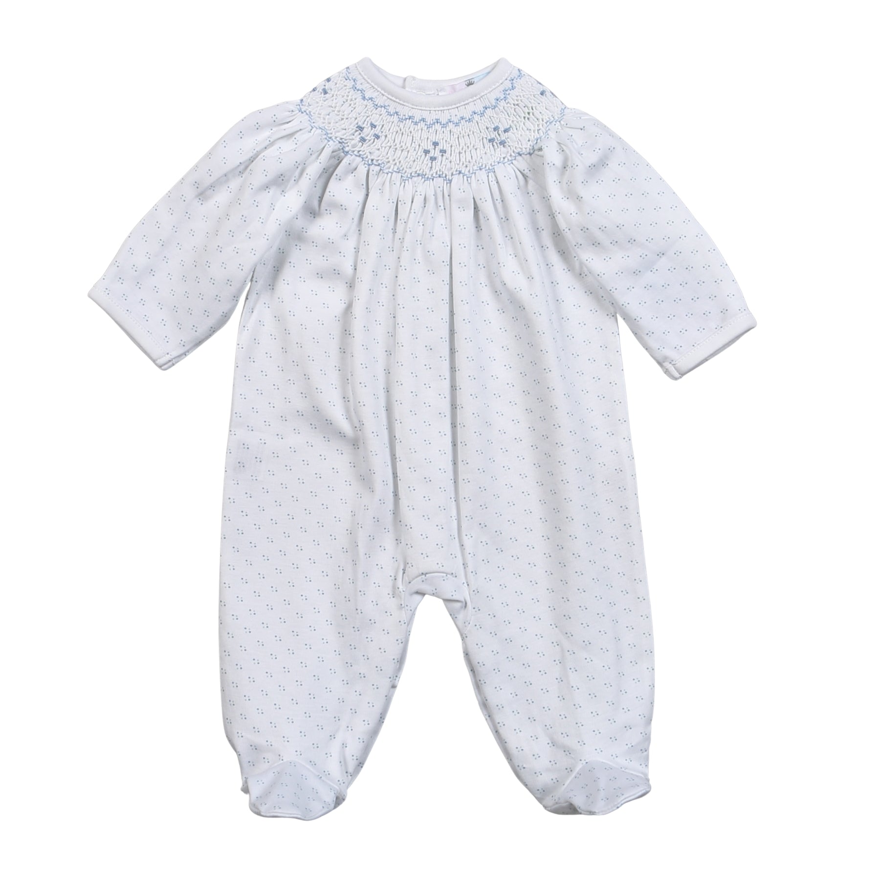Blue Tiny Dots Pima Hand Smk Footie, 100% Pima Cotton, Made in Peru