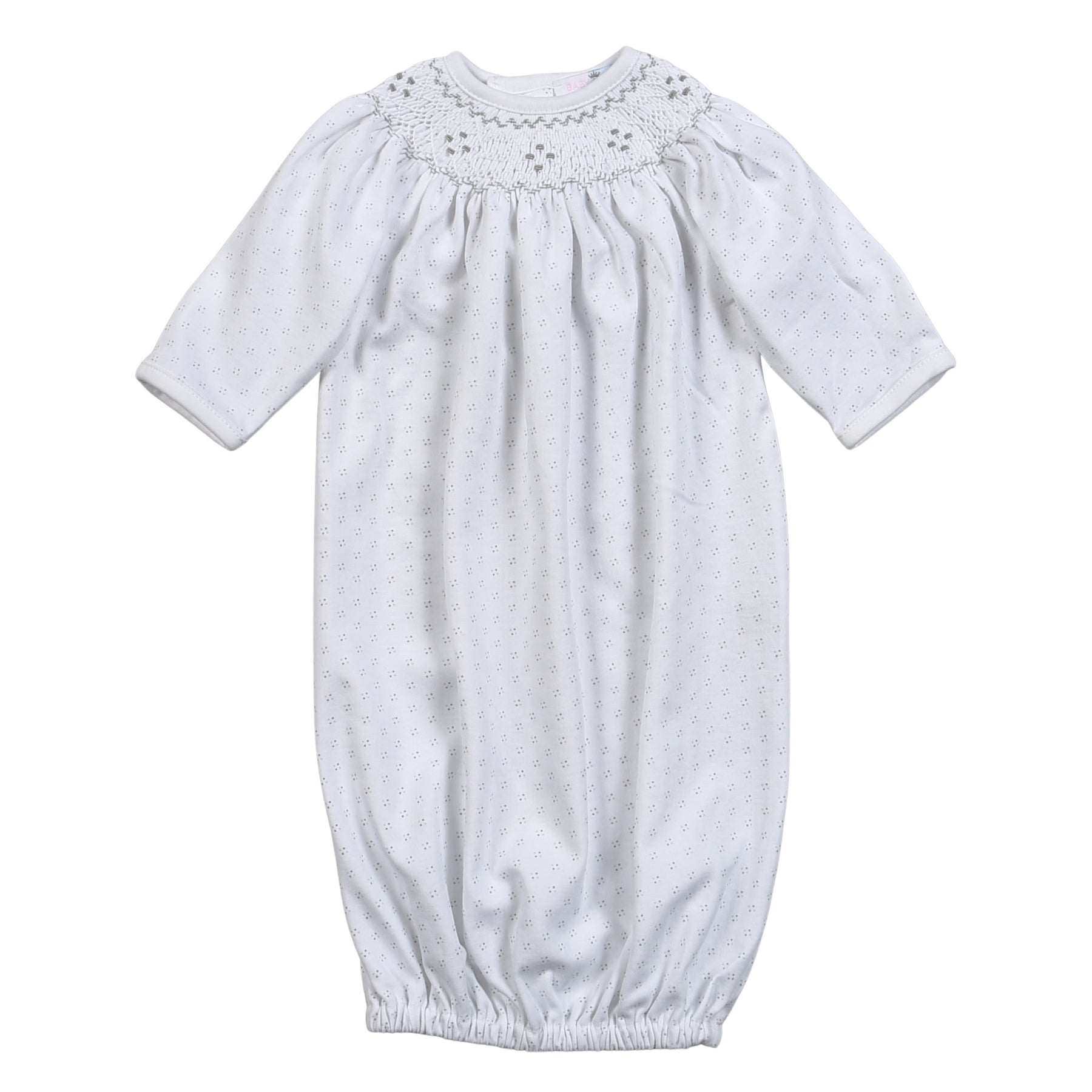 Grey Tiny Dots Pima Hand Smk GOWN, 100% Pima Cotton, Made in Peru