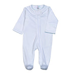 White Zipper Footie Blue Picot Trim., 100% Pima Cotton, Made in Peru