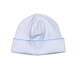 White Beanie Blue Picot Trim., 100% Pima Cotton, Made in Peru