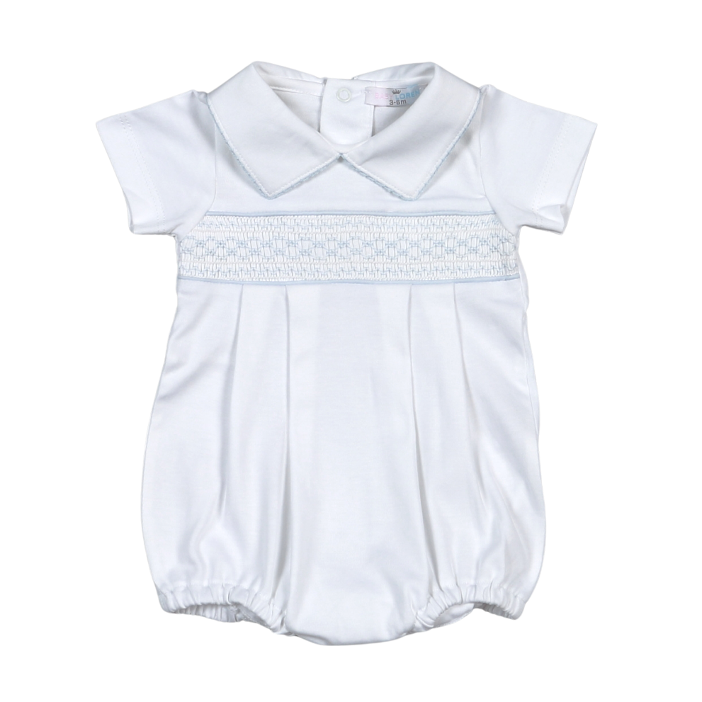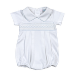 WBS-830 Tim white/Blue Hand Smocked Pima Short Sleeves Bubble