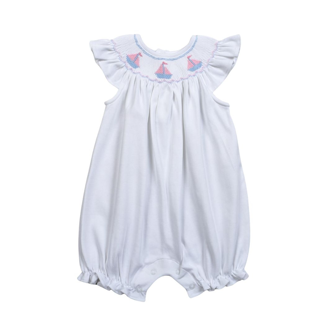 White Sailboats Hand Smocked Pima Bishop Bubble