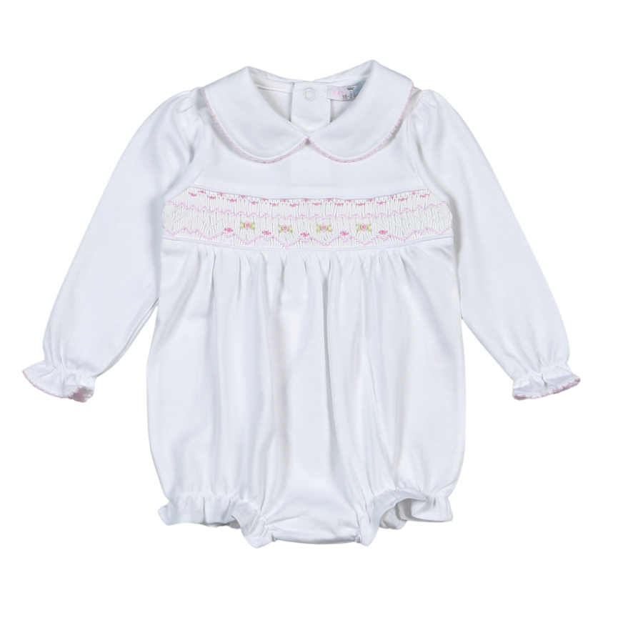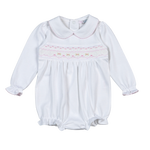 WPS-831 Sally white/pink Hand Smocked Pima Long Sleevs Bubble
