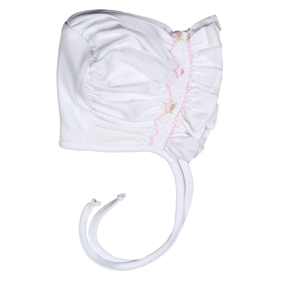 WPS-915 Sally white/pink Hand Smocked Pima Bonnet